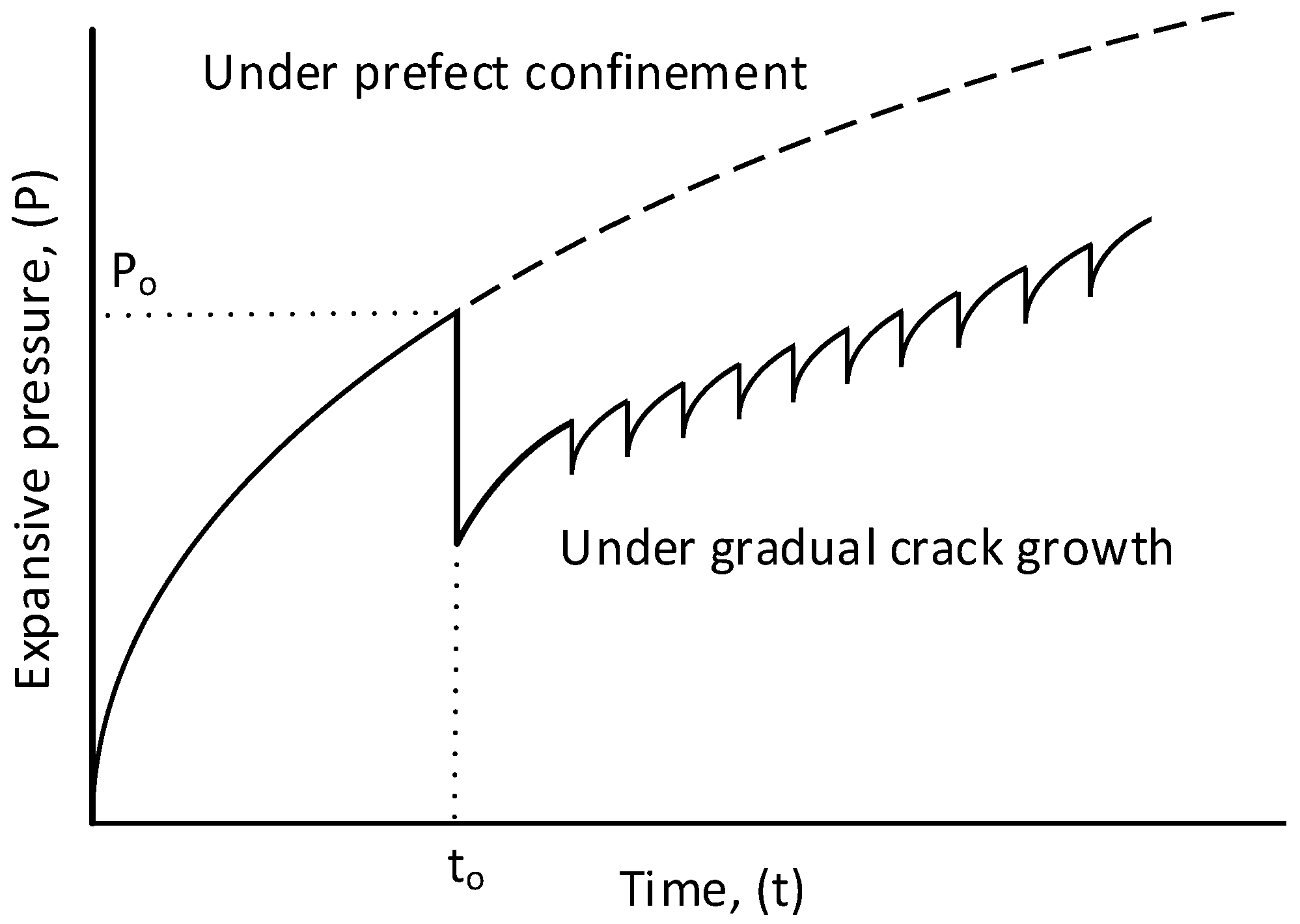 - Soeda, K.; Harada, T. The mechanics of expansive pressure generation using expansive demolition agent. Doboku Gakkai Ronbunshu 1993, 1993, 89–96. [Google Scholar] [CrossRef]