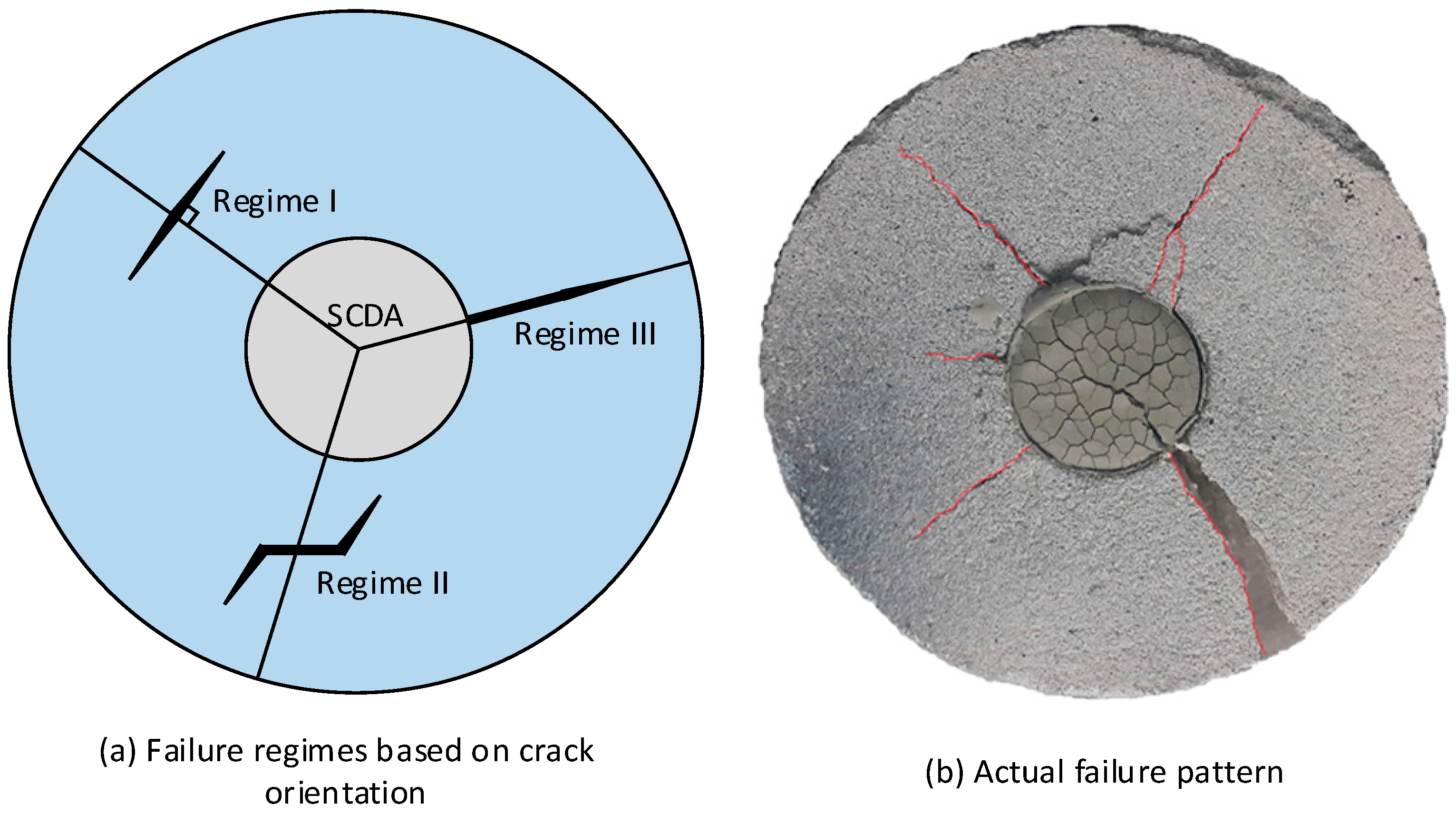 The expansive pressure developing by hydrating SCDA in an injection well produces radial compressive stresses in the surrounding rock along with tangential hoop stresses. The rock surrounding the injection well is assumed to be fragmented as a result of pre-existing micro crack extension in the presence of these two stress fields. As a result, the mechanism of fracturing rock with SCDA can be best explained by using sliding crack models.