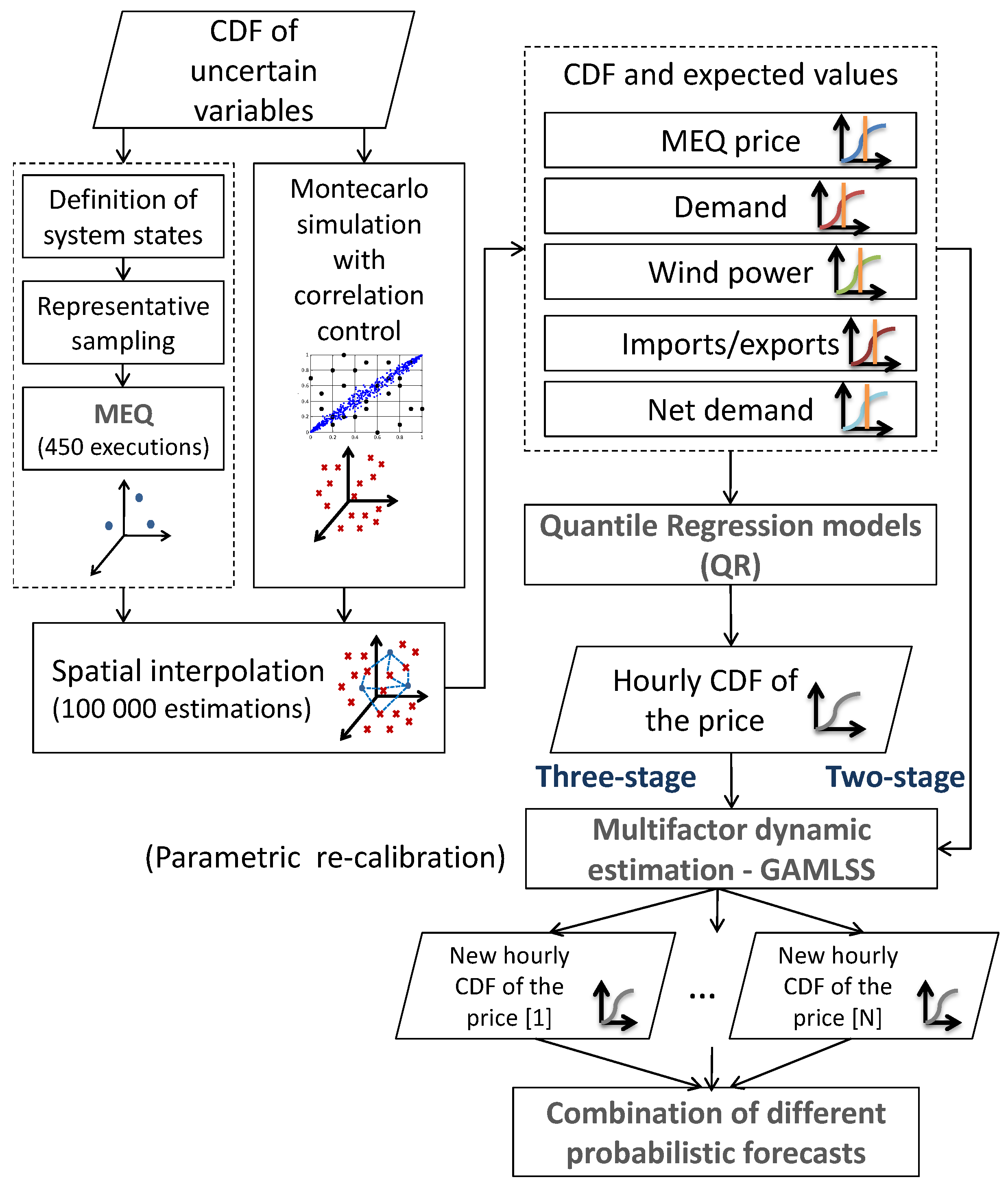 4]), and in a subsequent stage, incorporated into the two-stage forecasting approach. Finally, we investigate if, in the presence of multiple probabilistic forecasts of the same variable, it is better to combine the forecasts than to attempt to identify the single best forecasting model (