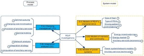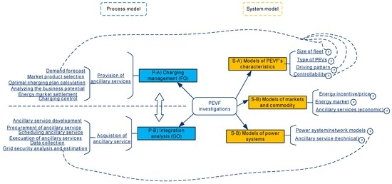 A model-based representation of a PEVF can be developed from many different angles. In this paper, we categorize the relevant models into two basic groups, i.e., process models (PMs) and system models (SMs), which are explained in this section. In most studies, the two groups need to be combined in different structures in order to establish a study for supporting design and implementation of management and integration policies. Figure 2 presents an abstracted overview of PMs and SMs with two layers of abstraction for each group.