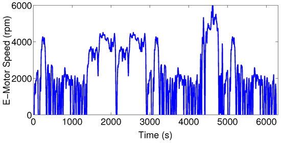 Traction E-motor speed during the combined driving cycle.