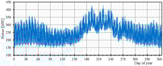 Finally, Figure 6 shows the electrical demand measured by Enemalta, during the year 2012 []. The graph confirms the presence of significant fluctuations in electrical load, during the days and year. It also shows a significant reduction in demand at the weekends.