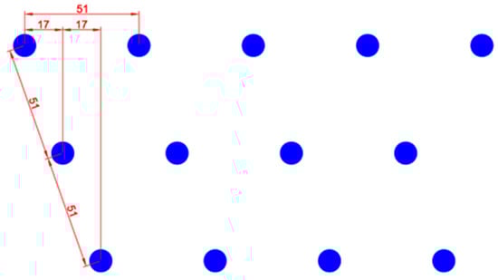 The minimal distance between each WEC is fixed to 51 m, about ten times greater than the radius of the external buoy (see Figure 15). This length is selected in order to minimize the interferences between the buoys of the wave farm []. So, a single wave farm covers an area with a length of 1500 m and a width of 120 m.