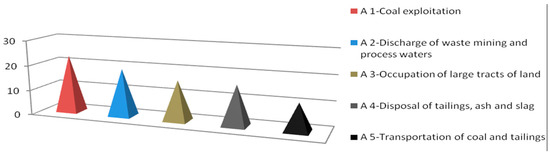 Aspects of environmental protection in the mining and energy complex were discussed based on the analysis of dominant problems in the functioning of the environmental protection system. A proposal of aspects for key problems (A1, A2, A3, A4, and A5) is given in Table 2.