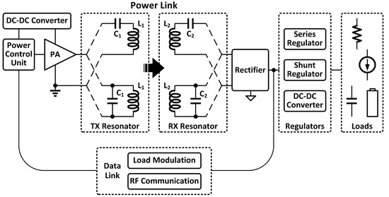 - Lee, B.; Kiani, M.; Ghovanloo, M. A Triple-Loop Inductive Power Transmission System for Biomedical Applications. IEEE Trans. Biomed. Circuits Syst. 2016, 10, 138–148. [Google Scholar] [CrossRef] [PubMed]