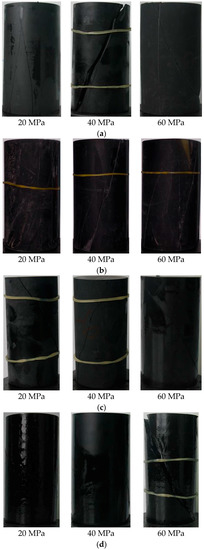 3.3.2. Failure Characteristics of Samples Subjected to Triaxial Compression
