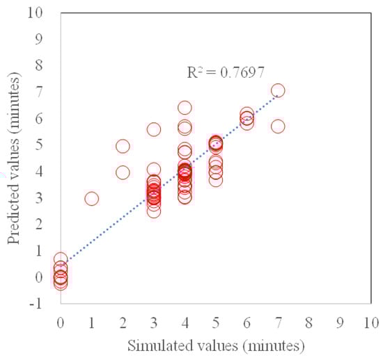 - From the performance tests, the proposed ANN model proved its prediction accuracy. The CVRMSE between the simulated outputs and predicted outputs (22.74%) was lower than the generally accepted level (30.0%). In addition, the difference between them for most of the cases was less than 1 min.