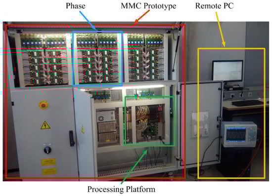 The three modulation methods have been validated and evaluated in the real six-level MMC prototype shown in Figure 14. The main parameters of the converter are presented in Table 2. The switching frequency of each modulation technique is the same that in Section 4. The PS-SPWM has been implemented with carriers of 750 Hz. The SVM and the NLM calculates the duty cycle by means of a frequency of 5.25 kHz and 3.75 kHz, respectively.