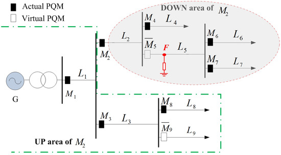 In Figure 8, the given TVDS (i.e., F) is in the UP-area of , , and , while in the DOWN-area of . Therefore, the results of direction-judgment at all the PQMs except for those are on are correct in this scenario, but only their disturbance intensities could be affected.