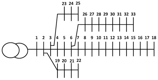 The DG placement (siting) and sizing (capacity) are mostly attained using optimization algorithms. Many power system researchers and planners have used diverse types of algorithms for optimal integration of DG placement and sizing in the distribution system. Most of the algorithms used are an analytical method, classical optimization technique, artificial intelligence (meta-heuristic) techniques and other miscellaneous techniques [5]. The authors [6,7,8,9] used the analytical method for optimal DG placement and sizing problem of different objective functions. The drawback of this algorithm is that it only handles the single-objective optimization problem. Optimal placement and sizing method using classical optimization algorithm have been used by [10,11,12,13]. Some authors had also used meta-heuristic based optimization algorithm. These algorithms include single-objective or multi-objective optimization techniques. The algorithms are mainly named as genetic algorithm (GA) [14], bat algorithm (BA) [15], artificial bee colony (ABC) [16], bacterial forging optimization algorithm (BFOA) [17,18], back-tracking and fuzzy expert [19], big-bang big crunch method (BB-BC) [20], imperialist competitive algorithm (ICA) [21], and PSO [2,22,23,24] are used for stressed problem. It is concluded that most of the research works are focused on the single objective. However, a few of the authors had worked on the multi-objective optimization with weighted techniques [16,25].