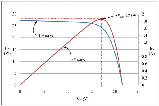 To increase the power output of a PV power generation system, PV modules are generally combined in serial and parallel configurations. However, external environments can cause shading because of dust, stains, and tall buildings, which generates nonlinear changes and multiple peaks in P–V characteristic curves. To examine the P–V and I–V output characteristics of serial and parallel PV module arrays subjected to partial shading, the SANYO HIP 2717 module [26] was adopted and various shading ratios were used. In addition, various arrays of serial and parallel configurations were tested. Table 1 lists the electricity parameter specifications of a single module under standard test conditions (i.e., air mass of 1.5, irradiance of 1000 W/m2, and PV module temperature of 25 °C) [26].