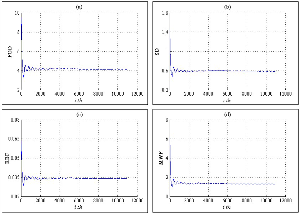 In order to testify the validity of using the MWF index to characterize the fluctuation of output process, several commonly used measures, namely, the FOD, SD, and RBF indices, were compared with the MWF index. Their functions are listed in Table 1.