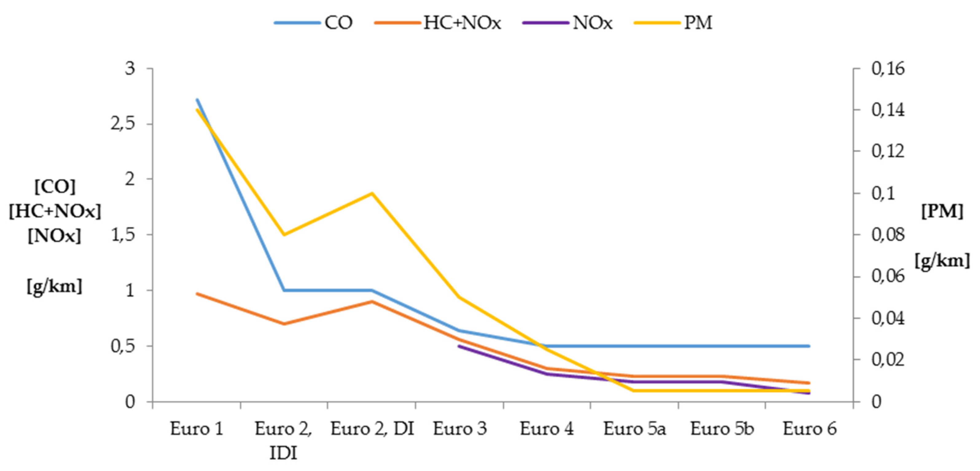 The Euro emission standards for the regulated diesel car pollutants (based on [16]).
