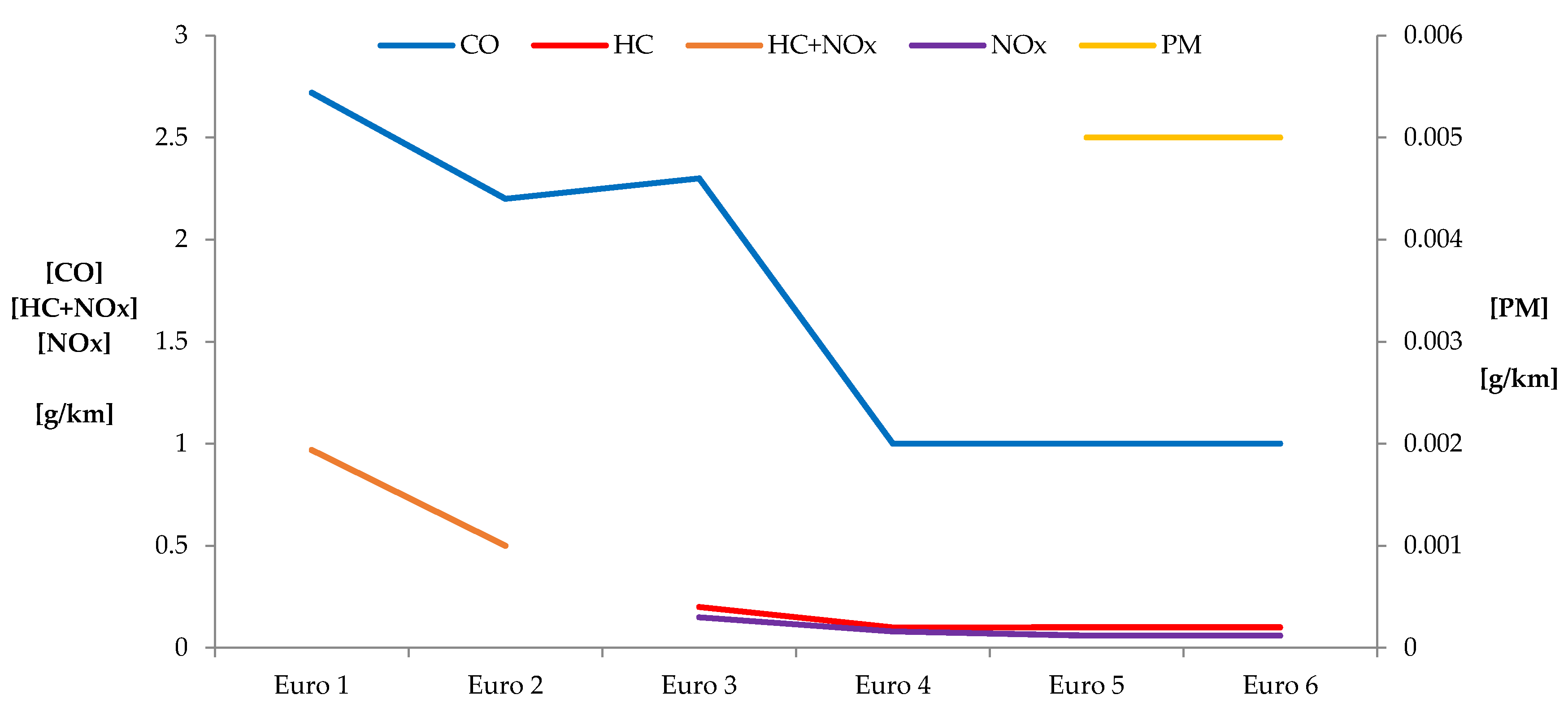 - Rexeis, M.; Hausberger, S. Trend of vehicle emission levels until 2020—Prognosis based on current vehicle measurements and future emission legislation. Atmos. Environ. 2009, 43, 4689–4698. [Google Scholar] [CrossRef]