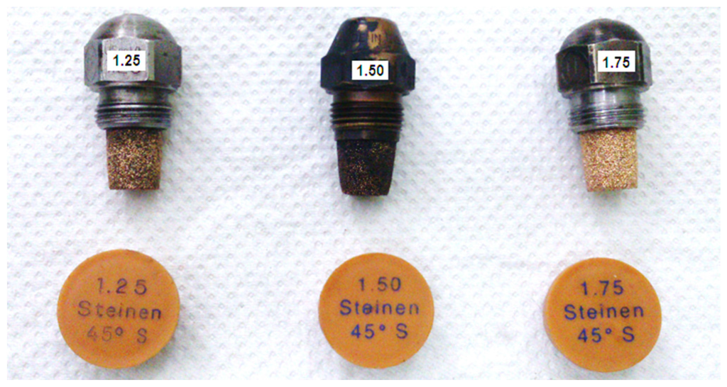 - Olson, B.E.O.; Engineer, C.; Carolina, S. Fuel Nozzles for Oil Burners Technical Aspects. Available online: http://www.designheating.com/pdf/ACF454.pdf (accessed on 2 December 2015).