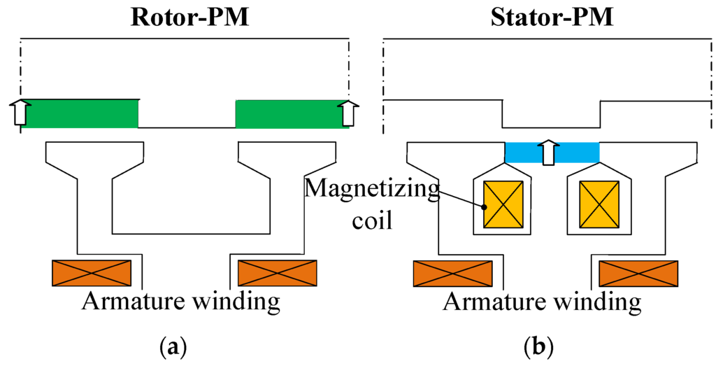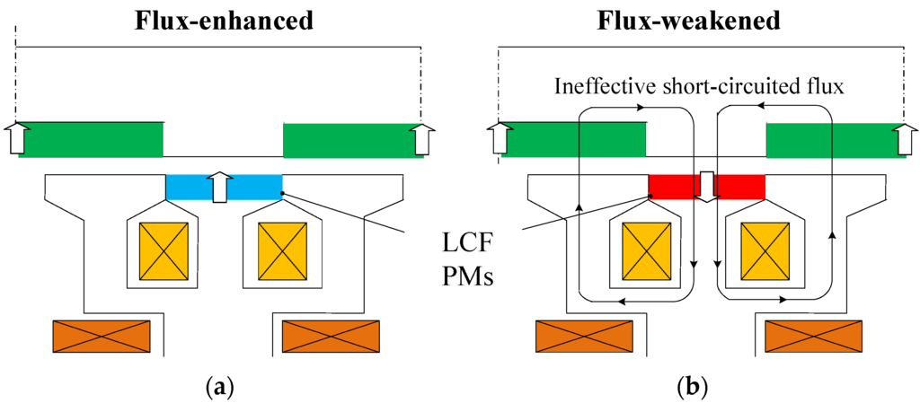Field regulatable principle. (a) Flux-enhanced; (b) Flux-weakened.