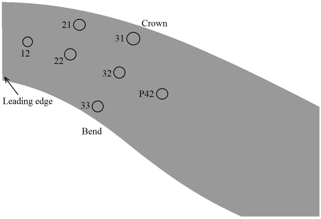 h* = 1.7). The dimensionless axial and radial positions of the sensors are listed in