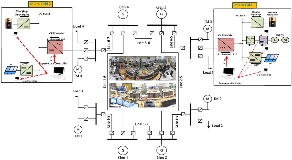 - Salehi, V.; Mohamed, A.; Mazloomzadeh, A.; Mohammed, O.A. Laboratory-based smart power system, part I: Design and system development. IEEE Trans. Smart Grid 2012, 3, 1394–1404. [Google Scholar] [CrossRef]