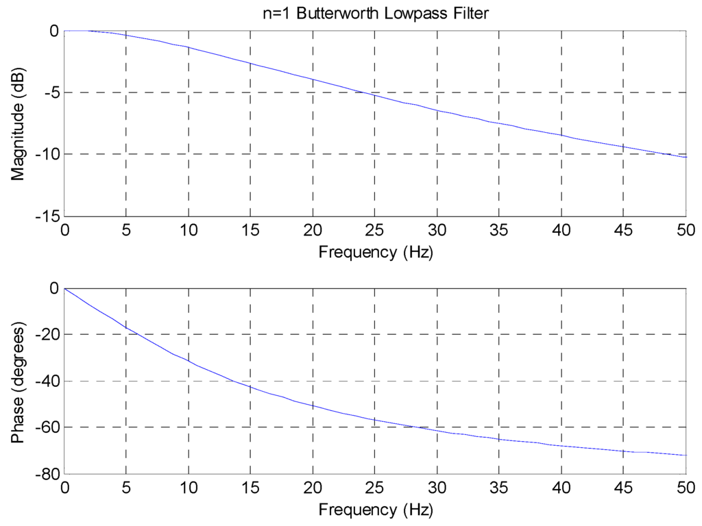 Frequency characteristics of a Butterworth low-pass filter.