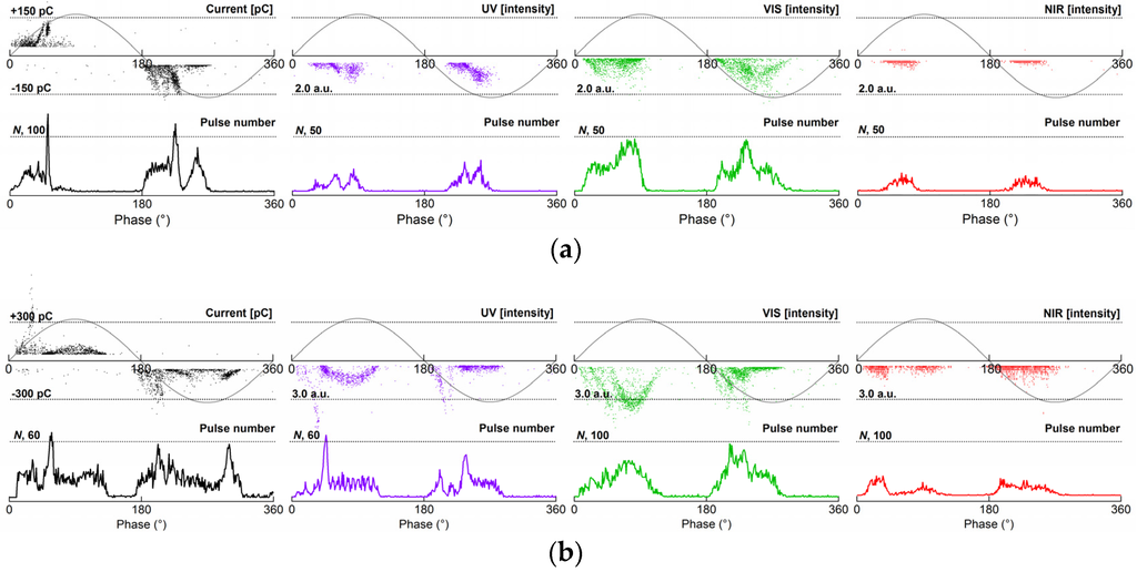 3.2. PRPD Analysis of Light Pulses in UV, VIS, and NIR Spectral Ranges