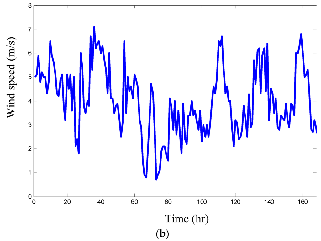 The curves of the typical weekly wind speed (a) winter; (b) summer.
