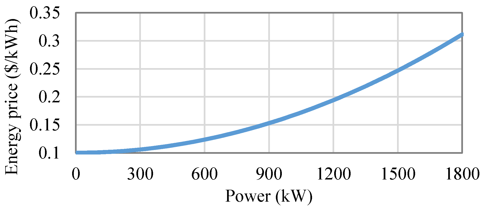 where is the energy price at ($/kWh); is the power purchased from the main grid at (kW); are the terms of the dynamic pricing function.