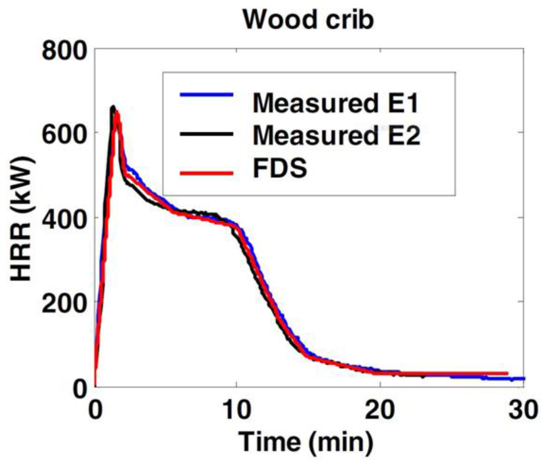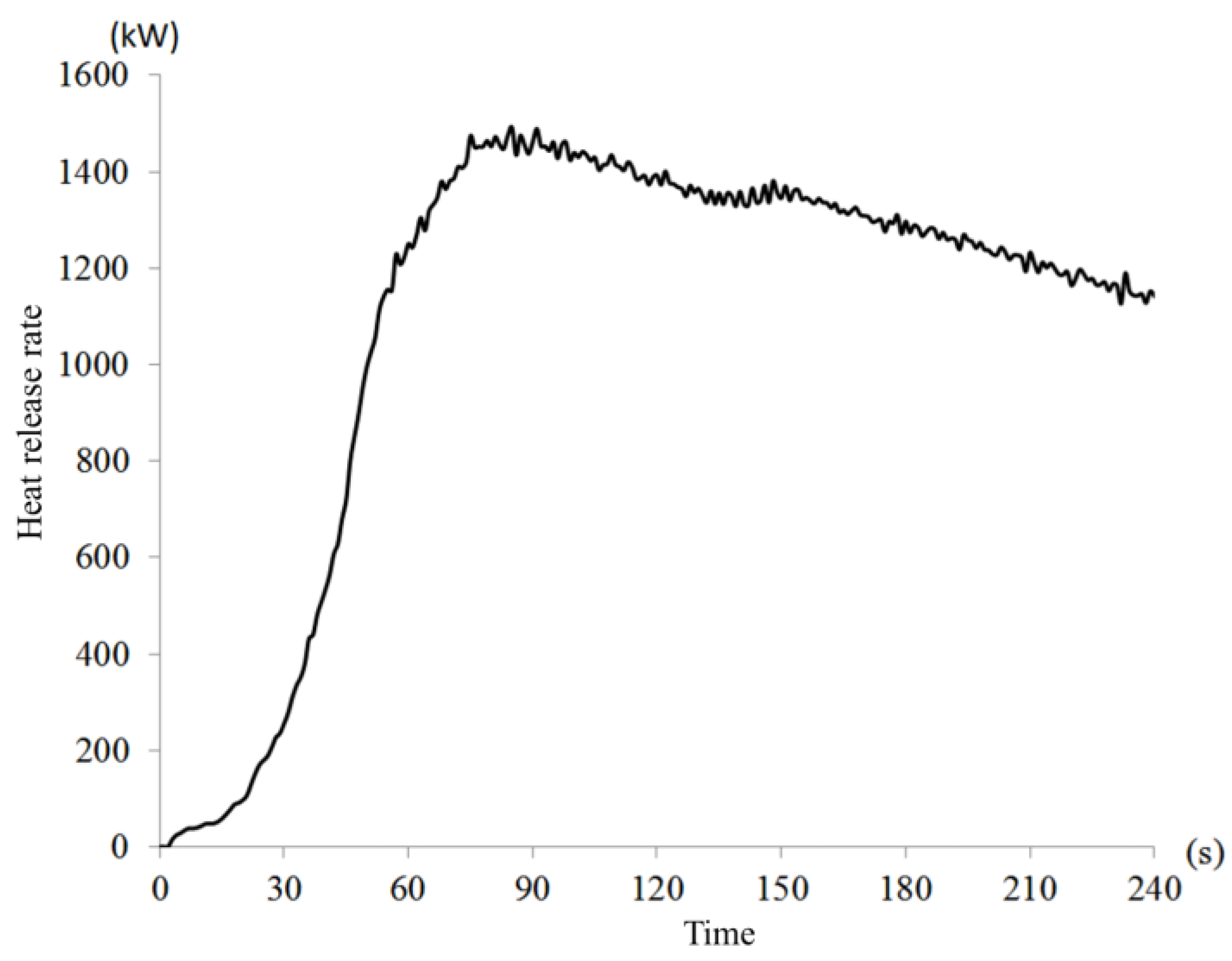 - For the wood HRR combustion curve, the setup parameters refer to the test report of Valtion Teknillinen Tutkimuskeskus in 2007; the values are listed in Table 3.