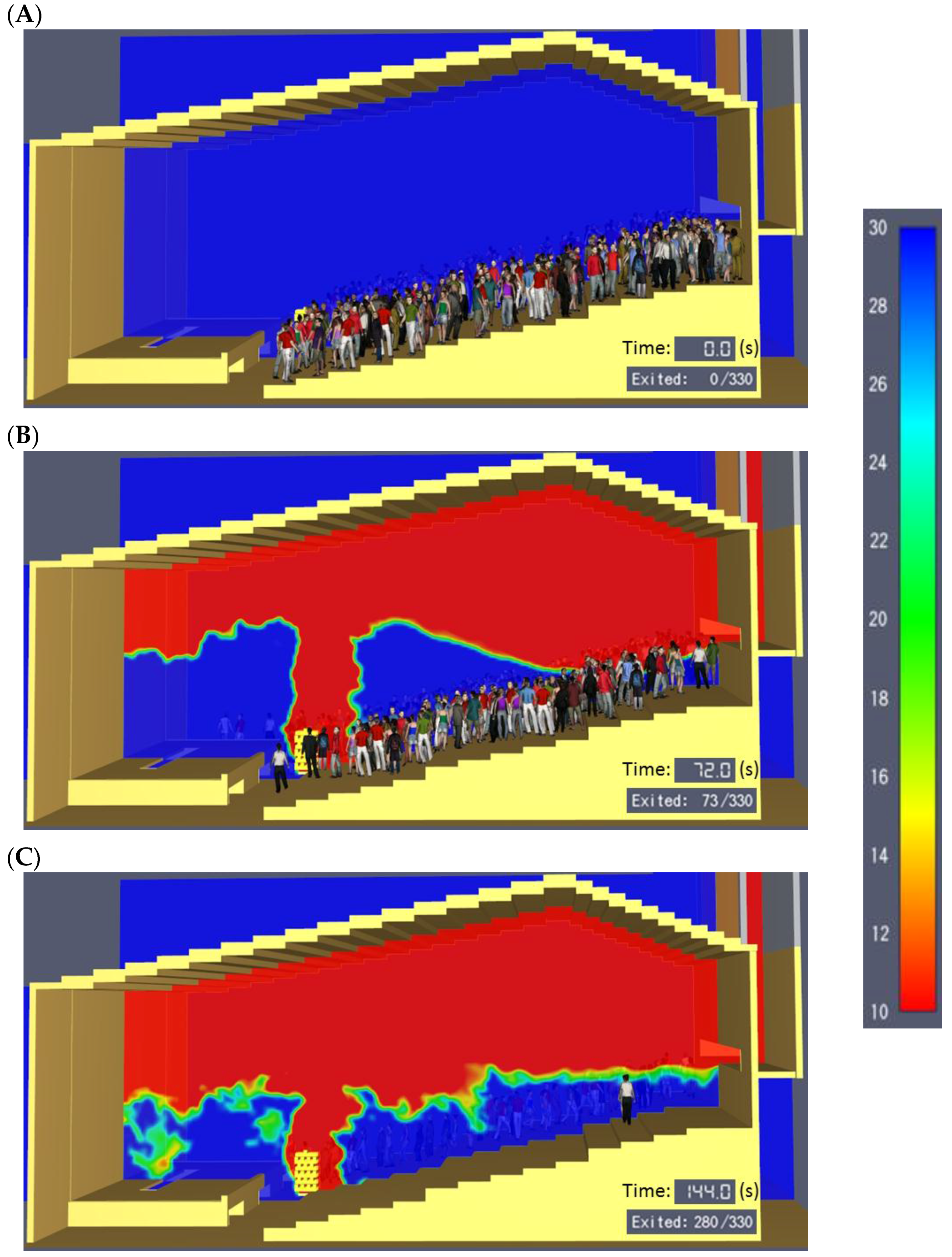 - Kuligowski, E.D. Computer Evacuation Models for Buildings. In SFPE Handbook of Fire Protection Engineering; Springer: New York, NY, USA, 2016; pp. 2152–2180. [Google Scholar]