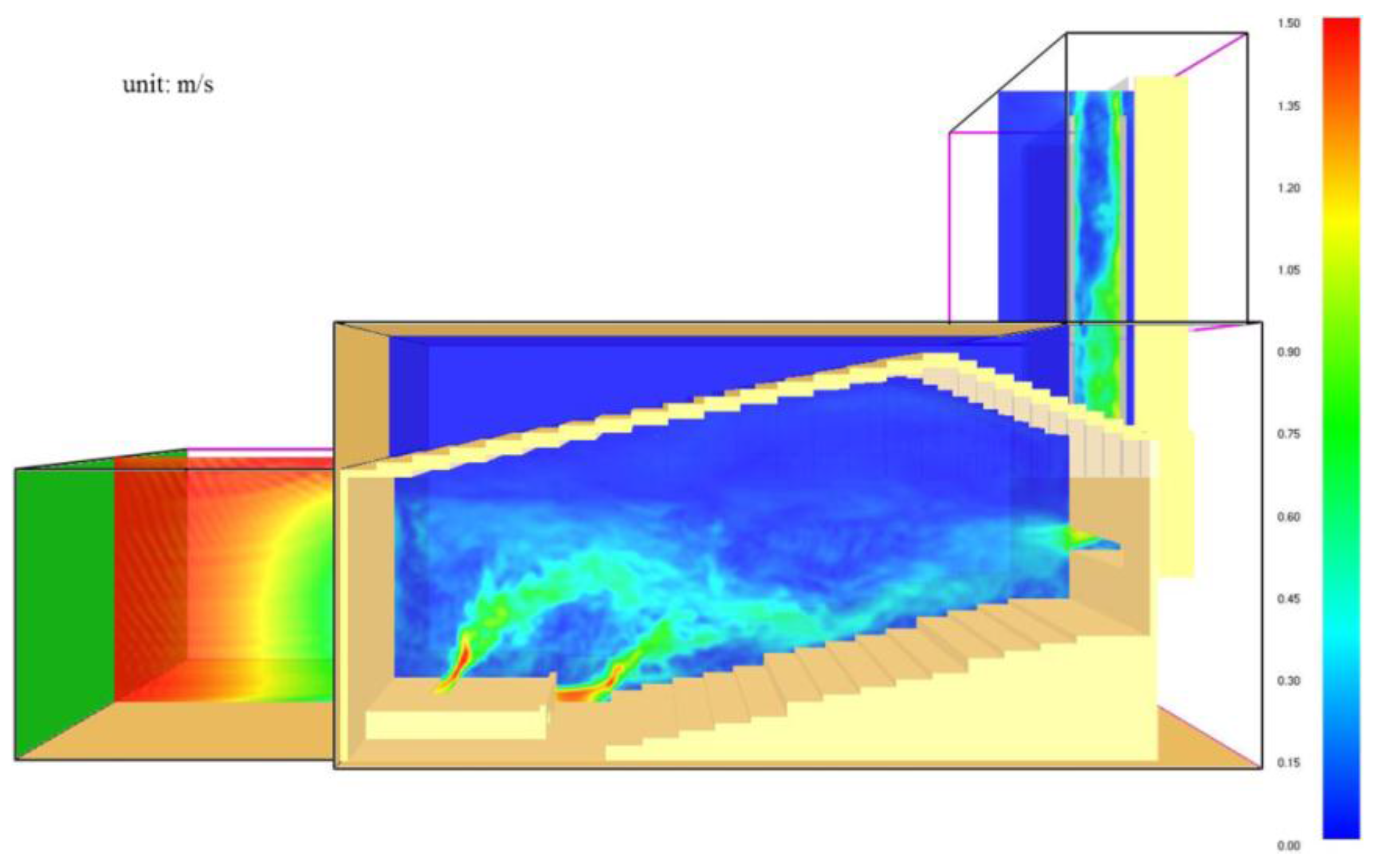 - Su, C.H.; Huang, H.S.; Lin, C.C.; Lin, C.Y. Numerical Simulation of The Impact of Natural Ventilation on Fire Safety in Green Buildings. In the 2nd Asia conference of International Building Performance Simulation Association (ASim2014), Nagoya, Japan, 28–29 November 2014; 2014; pp. 115–122. [Google Scholar]