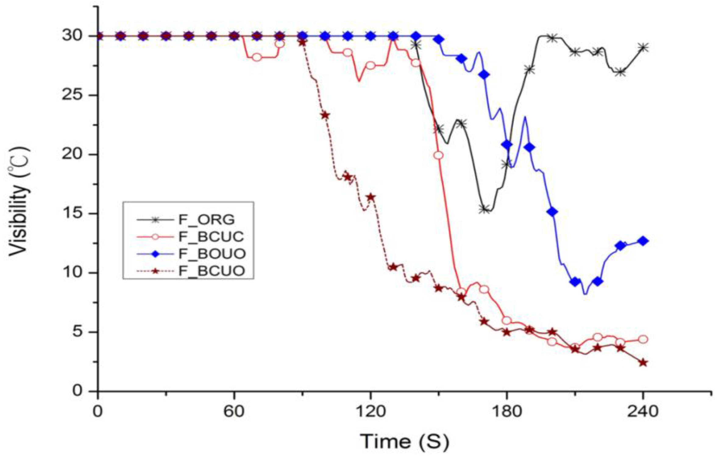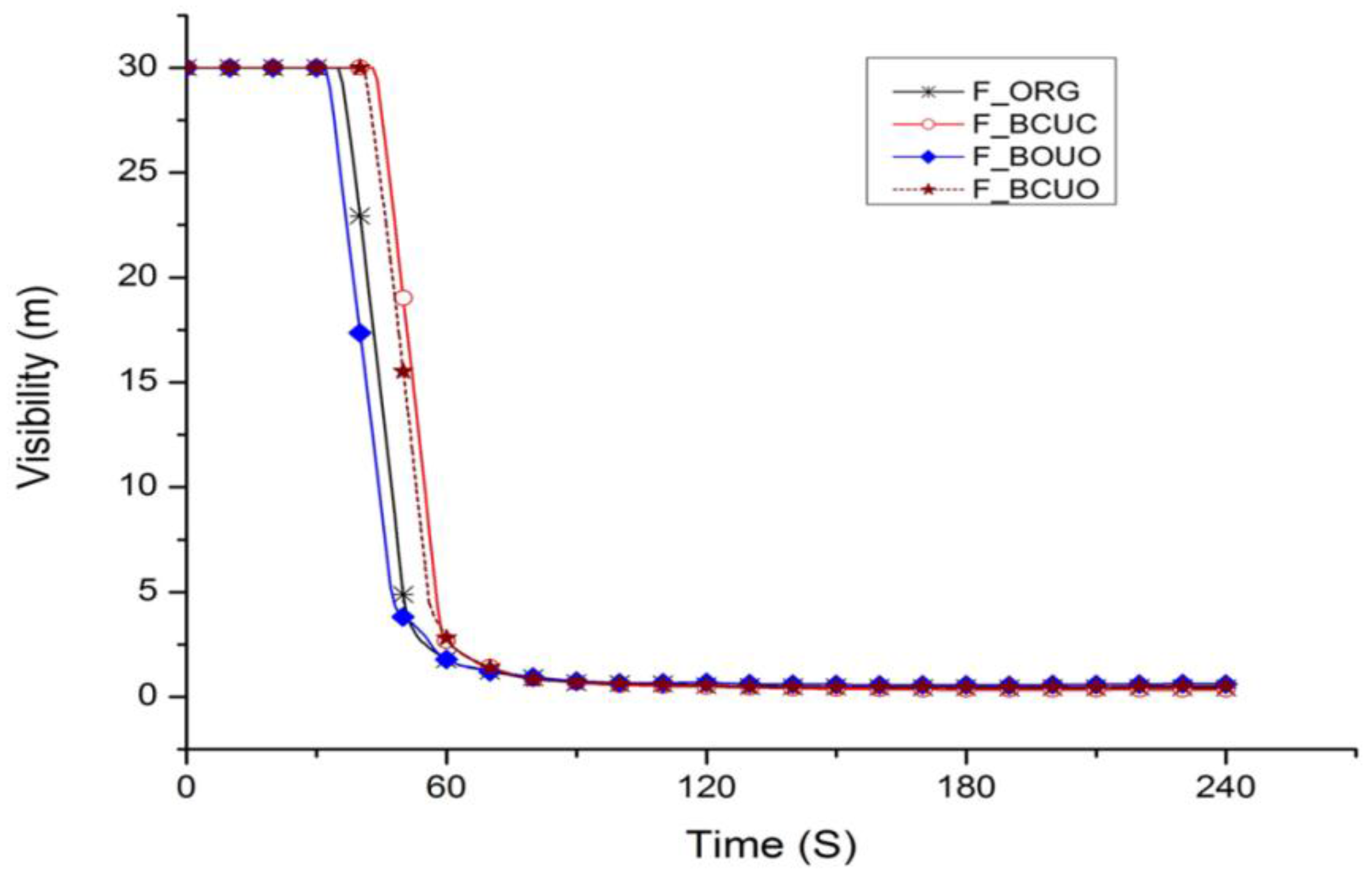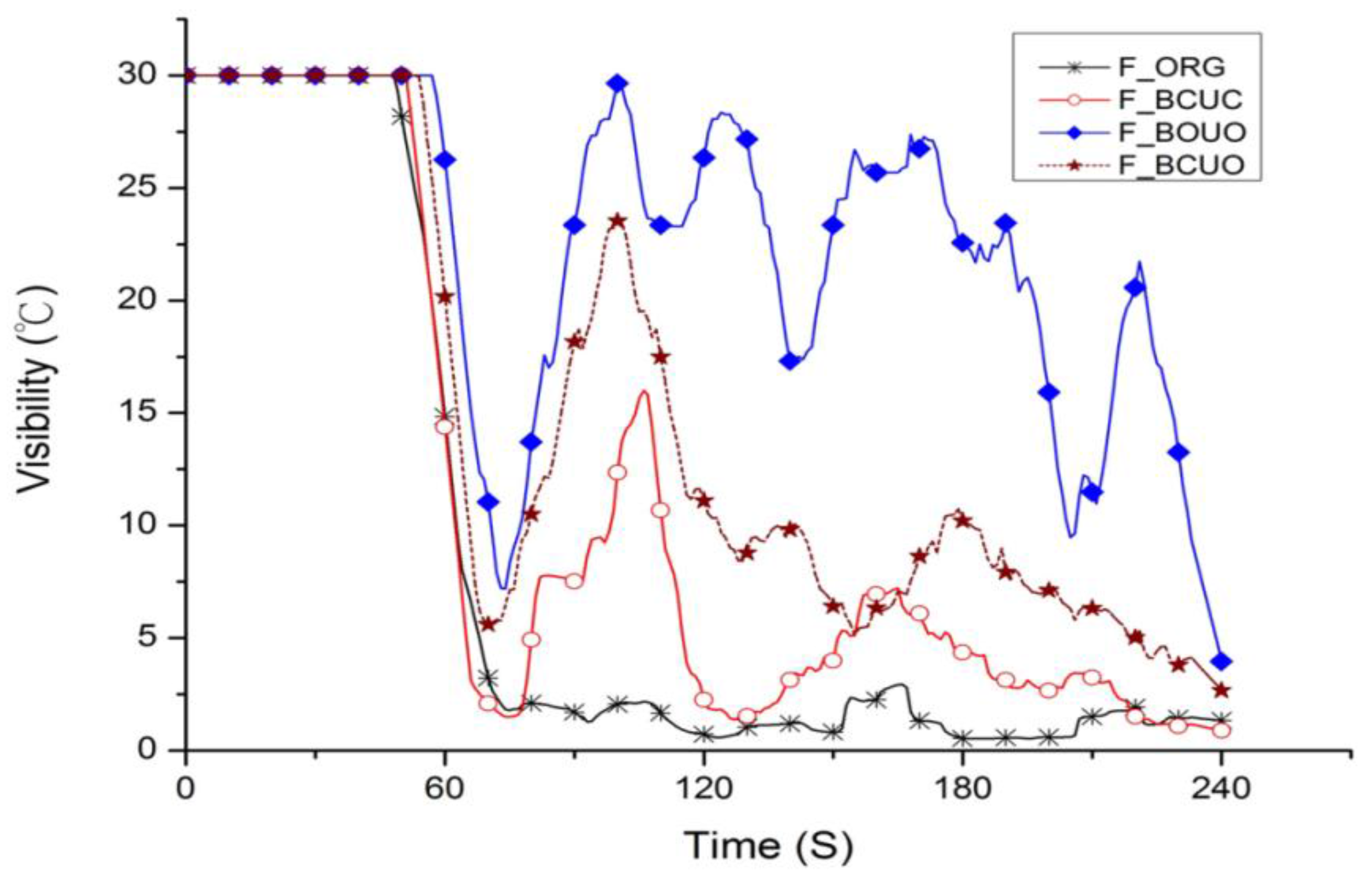 - Considering the actual breathing position of the people in the building, the visibility of the smoke layer was measured at 1.8 m above the ground.