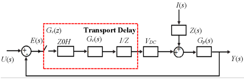 Current regulation for the proposed asymmetrical fault correction technique is achieved through a PI regulator implemented in the stationary frame of reference as discussed in [18]. Figure 4 shows an “average value model” block diagram of the inverter of proposed fault correction technique. In the given diagram, U(s) is the rated load current, E(s) is the error of feedback and rated load currents, and VDC is the forward gain of a linear amplifier, which replaces the PWM modulator. The grid input current is modeled as a current injection I(s), and Y(s) is the required output current of the inverter to obtain the regulated current for the load.
