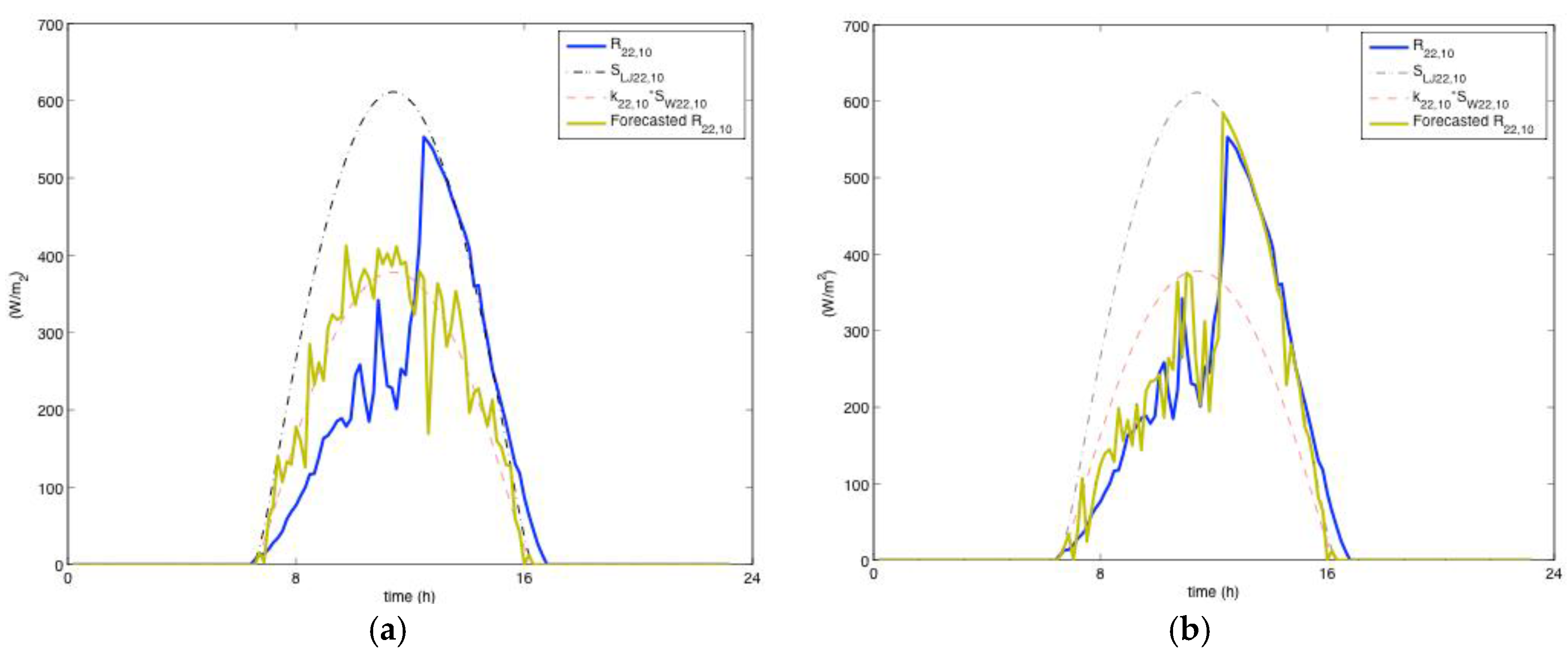 - Ibáñez, M.; Rosell, J.I.; Beckman, W.A. A bi-variable probability density function for the daily clearness index. Sol. Energy 2003, 75, 73–80. [Google Scholar] [CrossRef]