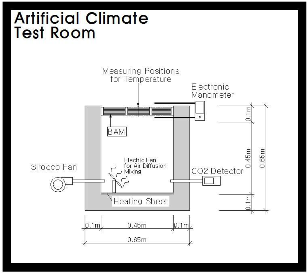 The BAM samples were made from polyethylene plywood sheets, which were installed in the experimental house as finishing materials. A space of 0.015 m was left between the mould of the wooden case and the BAM, and was filled with water-blown urethane foam so that the flow through the member could be considered a one-dimensional laminar flow.