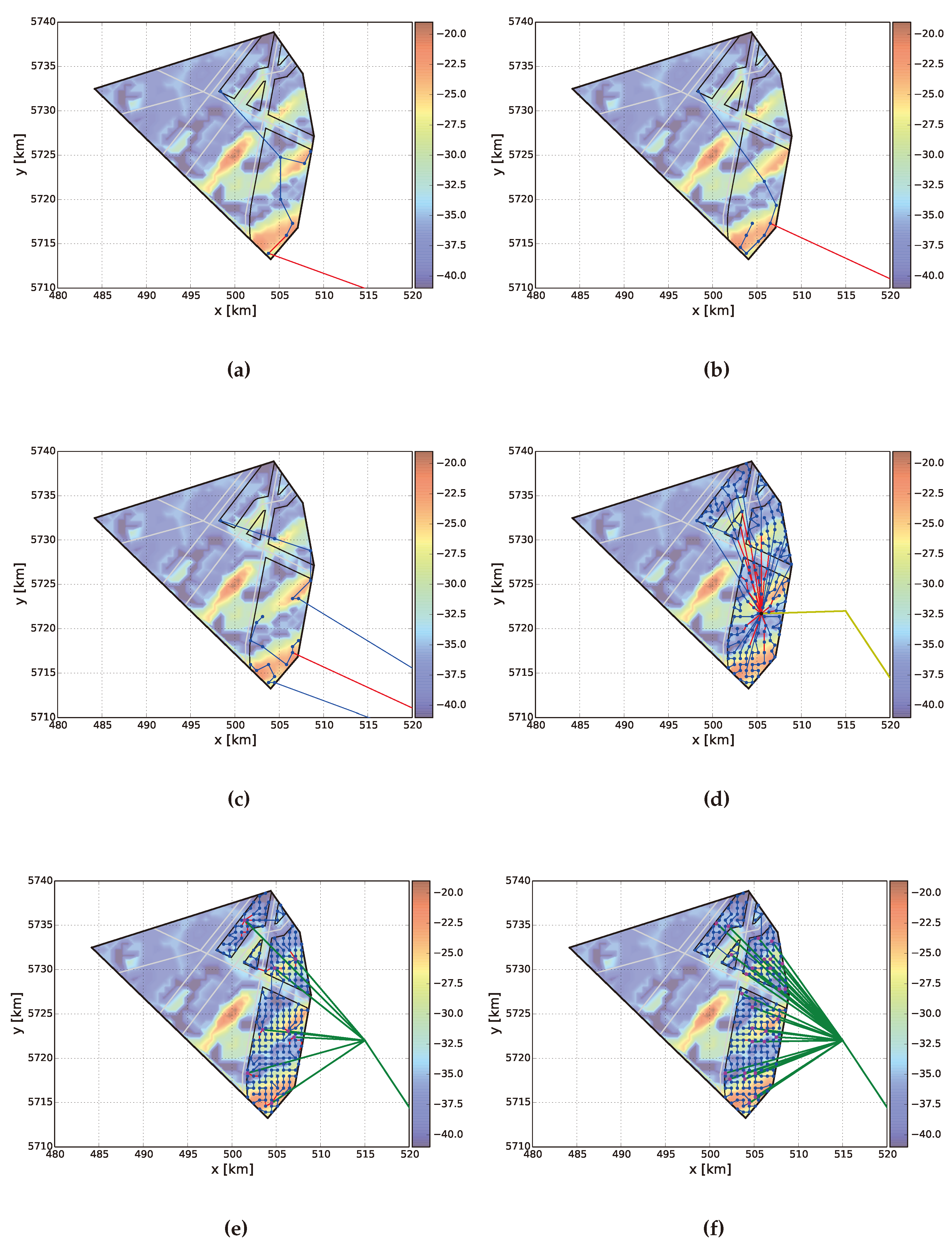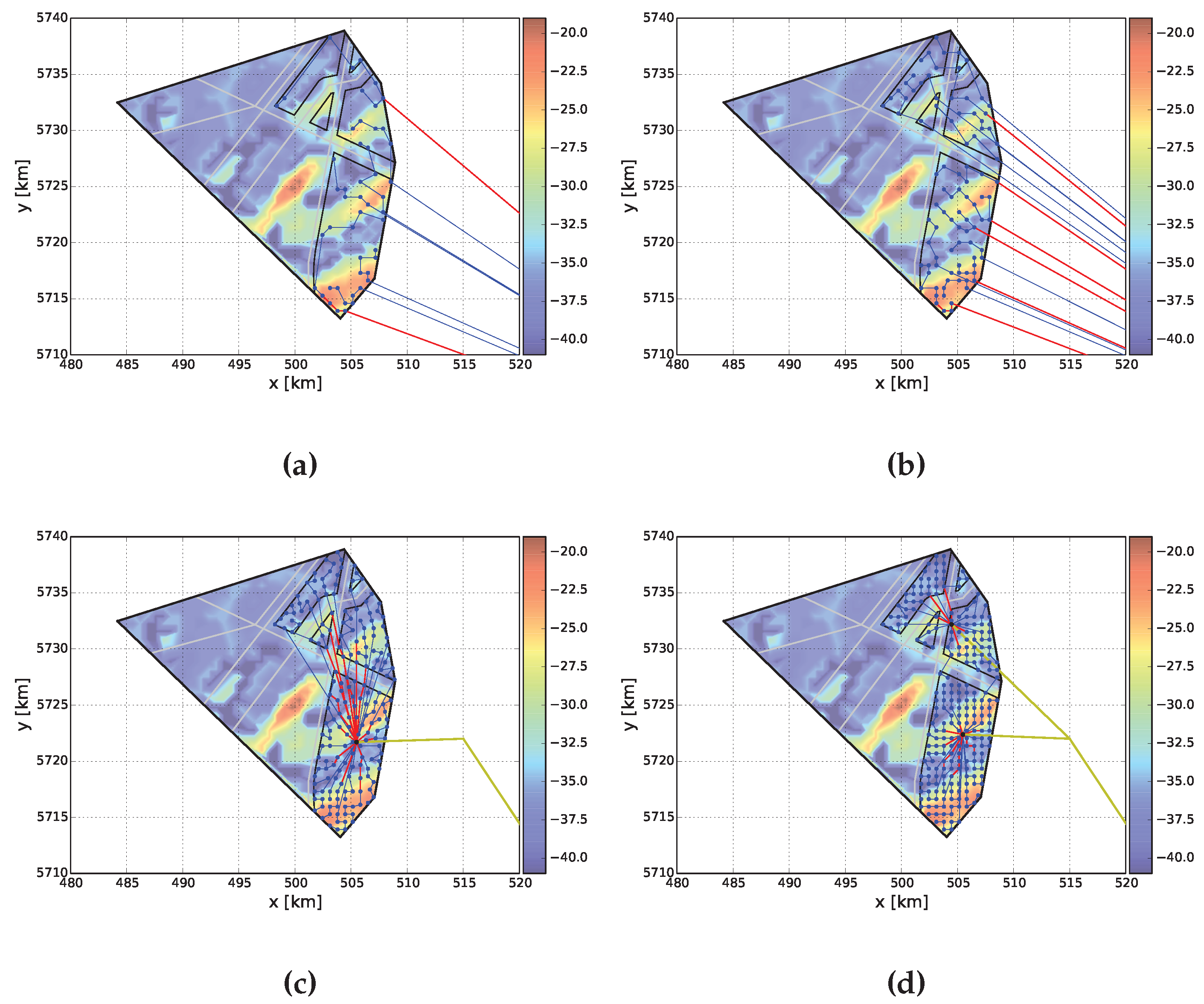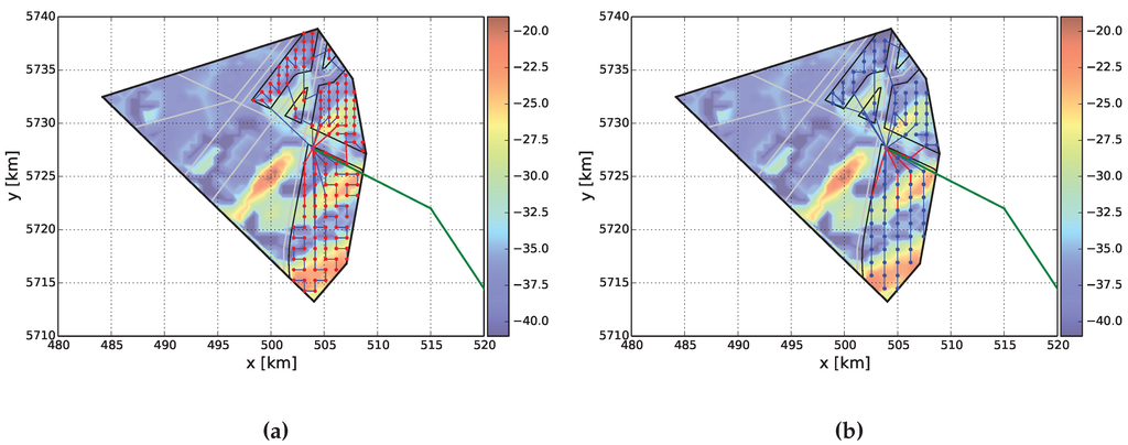 - Amberg, A.; Domschke, W.; Voß, S. Capacitated Minimum Spanning Trees: Algorithms Using Intelligent Search. Citeseer. 1996. Available online: http://citeseerx.ist.psu.edu/viewdoc/download?doi=10.1.1.47.3749&rep=rep1&type=pdf (accessed on 18 March 2016).