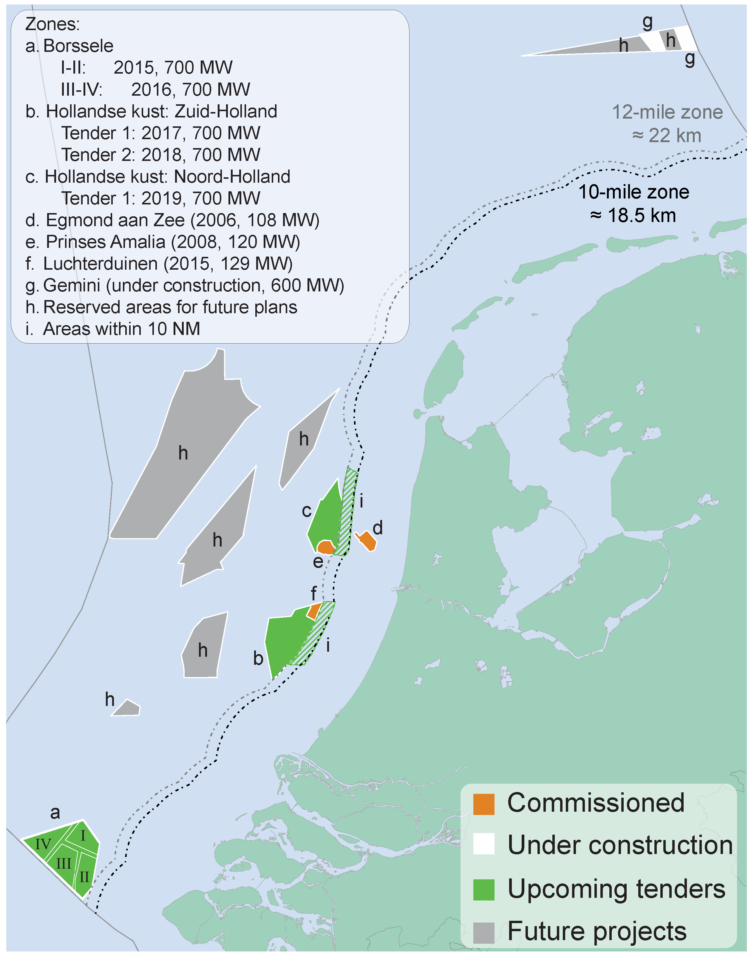 - Netherlands Enterprise Agency. Borssele Wind Farm Zone Project & Site Description; Technical Report; Ministry of Economic Affairs: The Hague, The Netherlands, 2014.