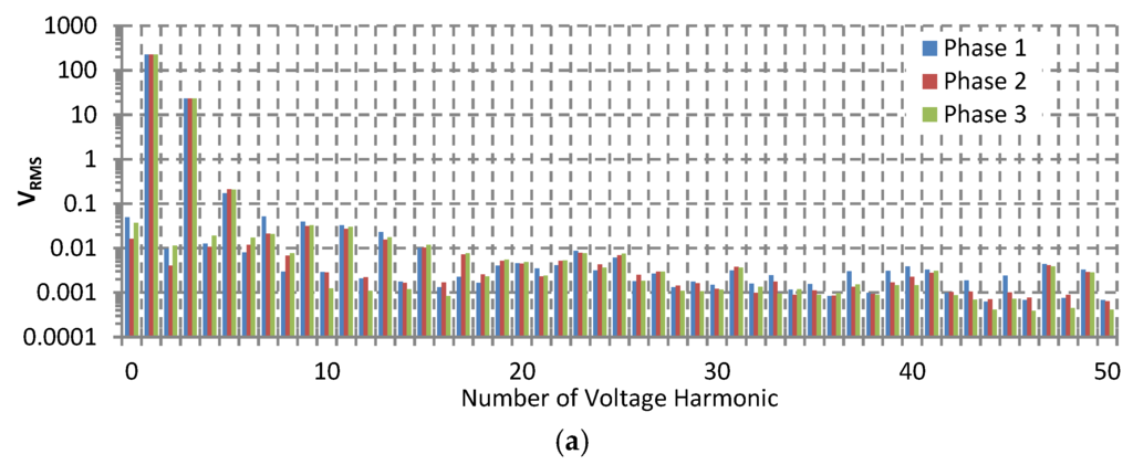 We have tried to follow the guidelines for the class A protocol, as reflected in IEC 62586-2, as closely as possible. Sometimes, however, it was necessary to adapt to the constraints of the laboratory resources available. These limitations are mainly given in the programmable power source, due to it having a maximum 300-V output voltage. In fact, the test point in the measurements had to be adapted to 150% of nominal voltage (345 V), as indicated by the standard, and reduce it to 130% of nominal voltage (300 V) due to the above limitation in the source output voltage. This circumstance has also caused linearity problems in the harmonic spectrum of the output source when operational limits have been forced. Therefore, the results of these tests are not intended to be conclusive in the sense of certifying the prototype’s class A category. However, these tests do indeed validate a high quality in the prototype, and may give an idea of its capacity to pass the rigorous class A certification.