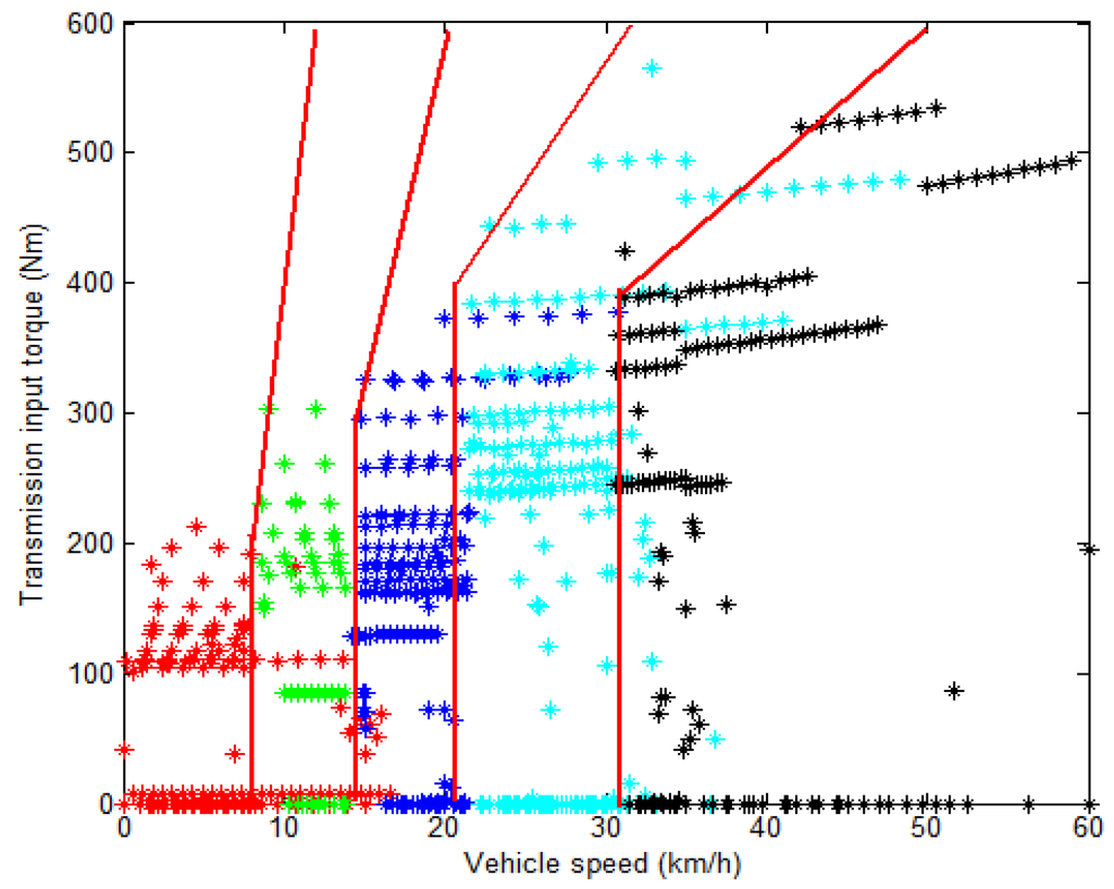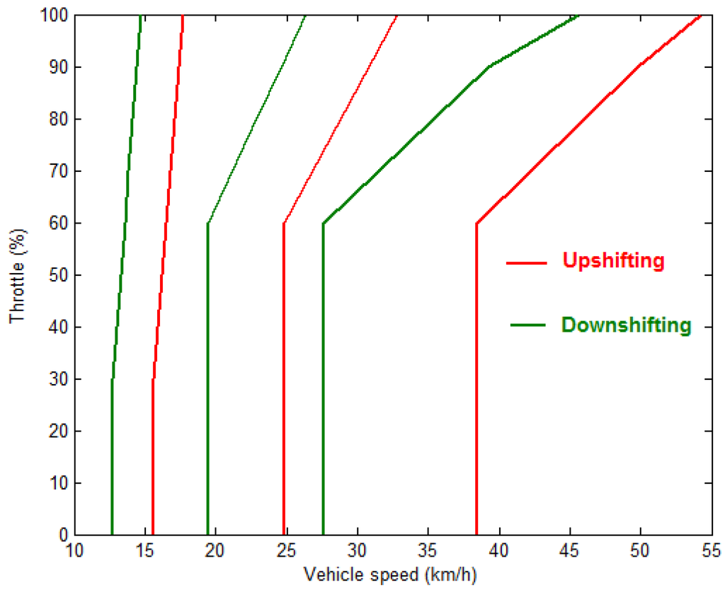 - Qin, G.; Ge, A.; Lee, J.-J. Knowledge-based gear-position decision. IEEE Trans. Intell. Transp. Syst. 2004, 5, 121–125. [Google Scholar] [CrossRef]