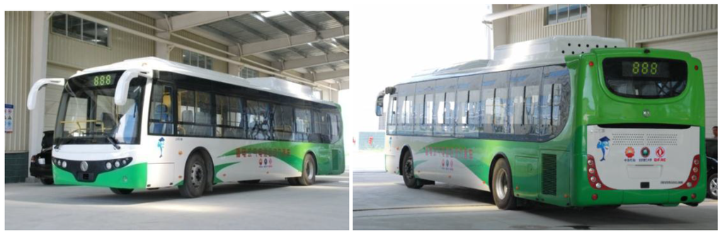 The conventional two-parameter gear shift schedule and the extracted gear shift schedule are tested and verified on a hybrid electric bus shown in Figure 9 in a typical city driving cycle. The major components’ parameters of the tested HEV are listed in Table 2.