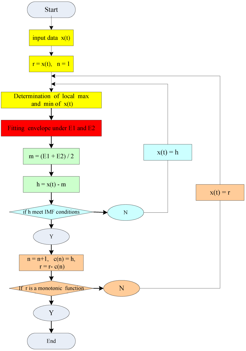 i.e., the original complex time series can be transferred into a series of single and apparent components. However, this method cannot deal well with the signal decomposition effects while the gradient of the time series is fluctuating. Based on the empirical decomposition mode, reference [