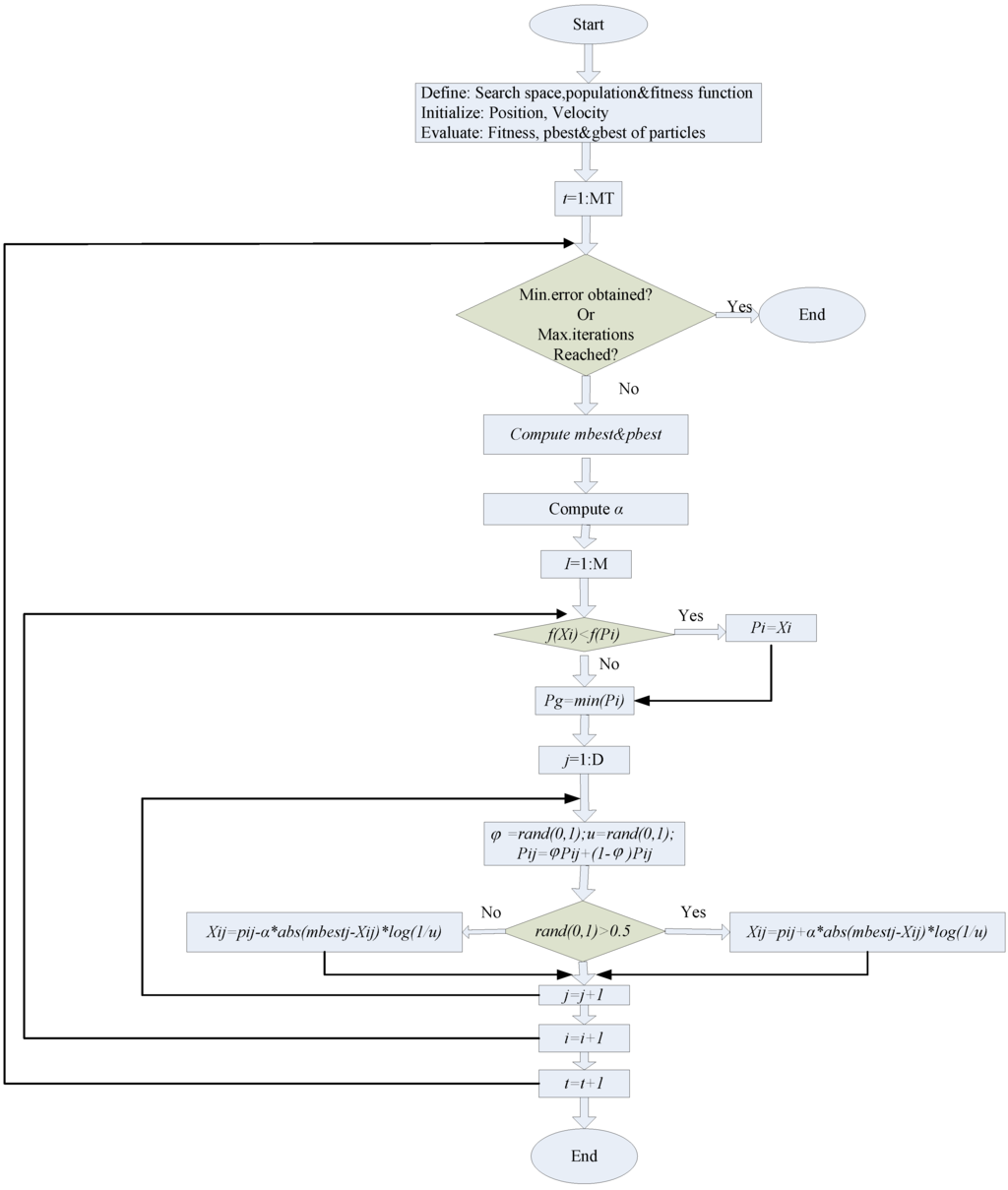 33] introduced quantum theory into PSO and proposed a quantum-behaved PSO (QPSO) algorithm, which is a global search algorithm to theoretically guarantee finding good optimal solutions in the search space. Compared with PSO, the iterative equation of QPSO needs no velocity vectors for particles, has fewer parameters to adjust, and can be implemented more easily. The results of experiments on widely used benchmark functions indicate that the QPSO is a promising algorithm [
