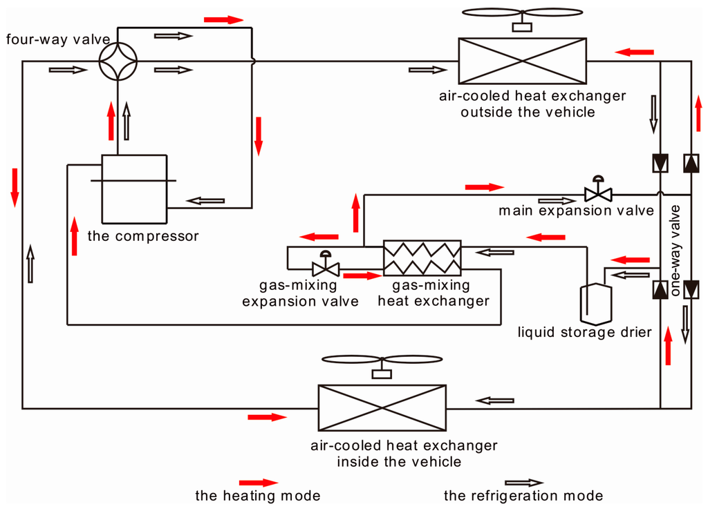 Schematic of gas-mixing heat pump system for fully EVs [74].