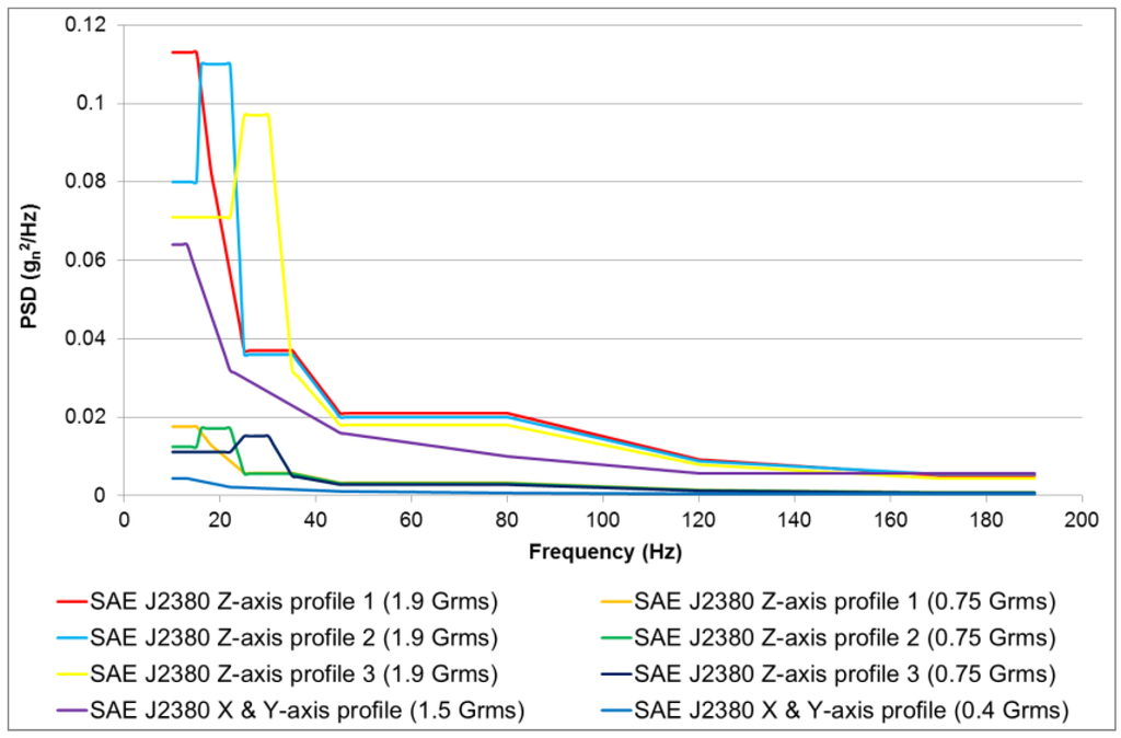 Society of Automotive Engineers (SAE) J2380 vibration profiles schedule.