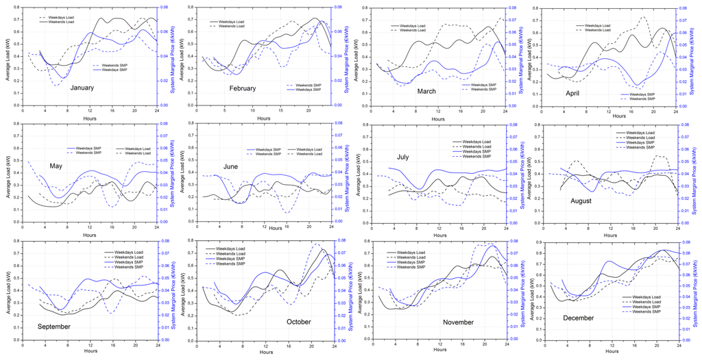 Generally, electrical load data can be obtained through actual measurements at various time steps. Alternatively, when measurements are not available, averaged load profiles may be used that correspond better to the prosumer’s profile. For reasons related mainly to the availability of climatic data in various databases, the methodology uses monthly load profiles.