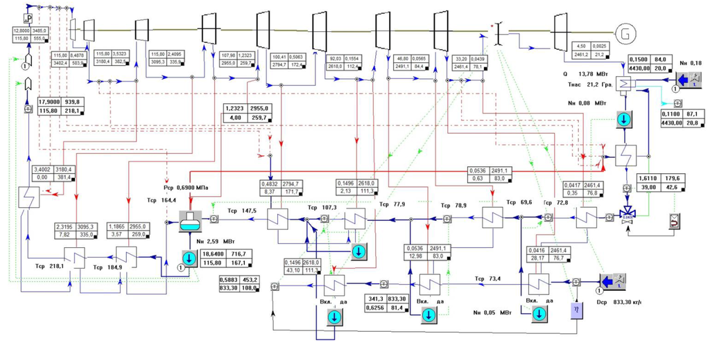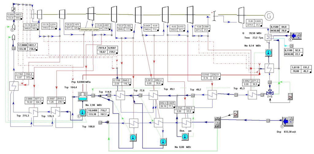 Presented below are the respective turbine unit simulations produced using Boiler Designer (Optsim-K, Moscow, Russia), a software tool for designing heating installations and finalizing them with static and dynamic computations.