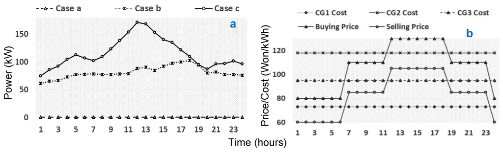(a) Hourly collective uncertainty gap for both renewable power sources and electric loads; and (b) Market price signals along with generation cost of controllable distributed generators.