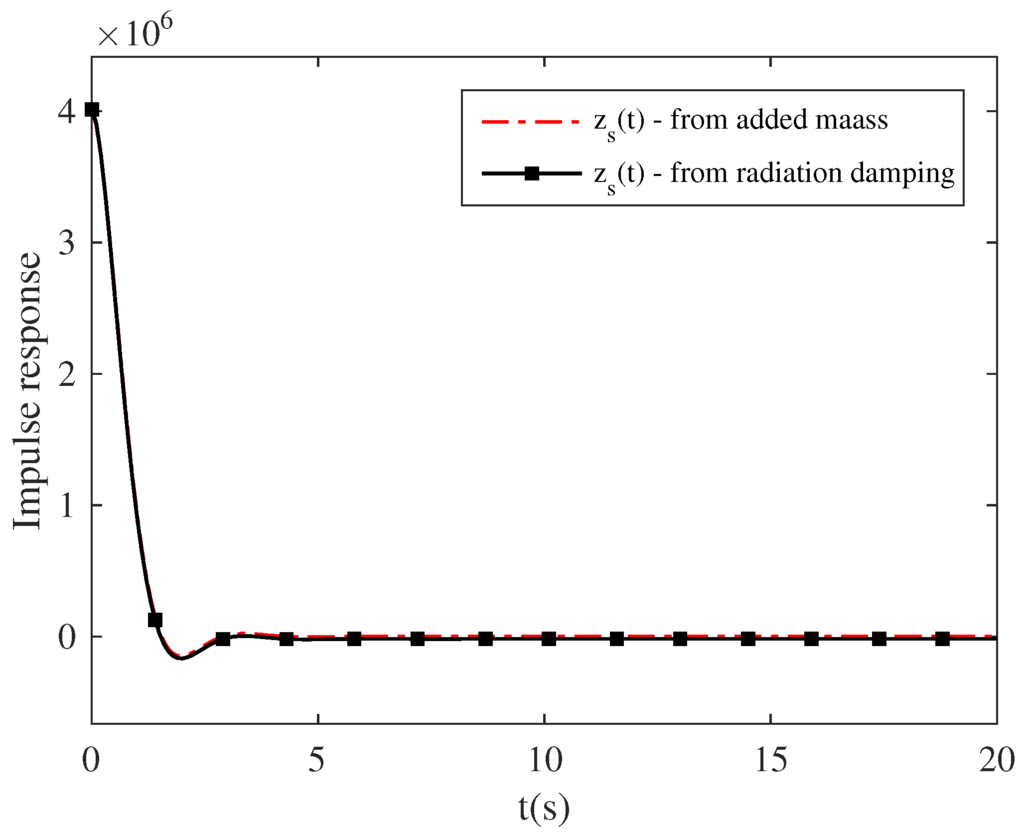The impulse response of the sea side can be calculated by employing either the added inertia or radiation damping data in the frequency domain [19]. Therefore, the radiation moments can be expressed as: