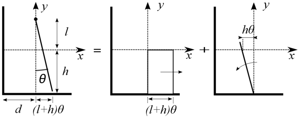 Figure A1 shows the graphical replication of a top hinged flap type wave maker by the superposition of piston type and bottom hinged flap type wave makers. When the piston wave maker moves from its origin to the +ve x direction, the bottom hinged wave maker oscillates counter-clockwise direction and vice versa (here θ is the angle of oscillation of top hinged flap).