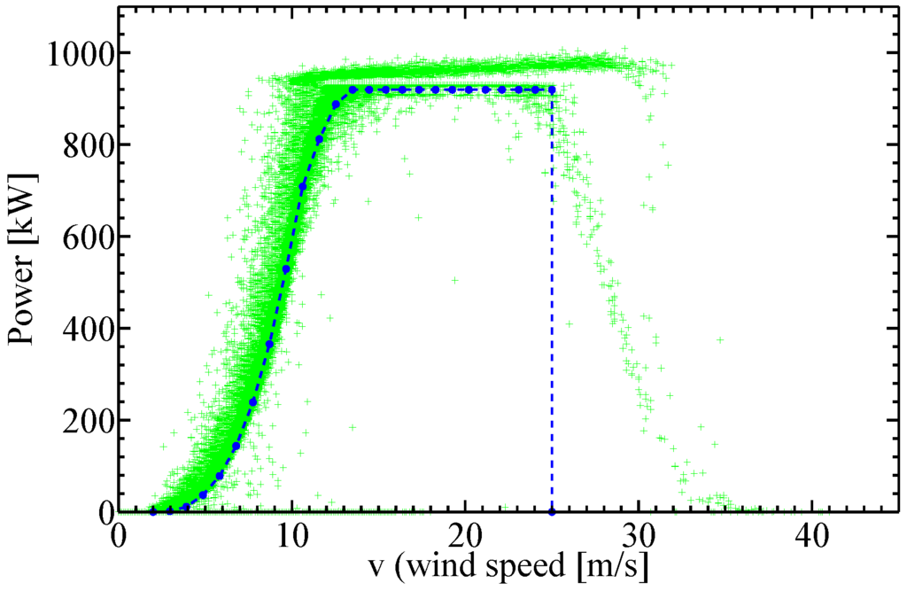 - Verify the power curve of the test wind turbines (Enercon E44 900 kW) by comparing the calculation to the actual power production data