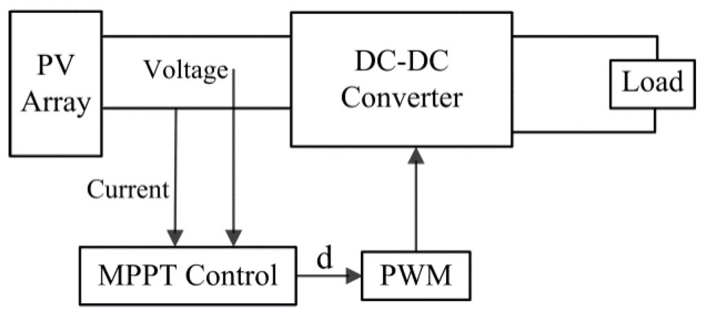 With the increasing problem of environmental pollution and approaching depletion of conventional fossil-fuel energy sources, solar energy, as a clean, environmentally-friendly and abundant energy source is attracting more attention. An effective way of using solar energy is photovoltaic (PV) generation; however, the output characteristics of PV arrays vary with the environment (cell temperature and irradiation). The maximum power point (MPP) tracking (MPPT) techniques are thus employed to harvest the maximum power from PV arrays [1,2]. In recent years, many MPPT strategies have been proposed with differences in complexity, cost, convergence speed, and overall output efficiency [3].