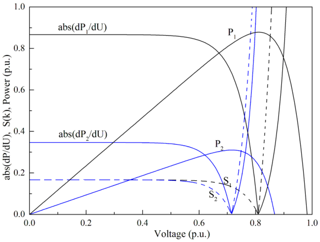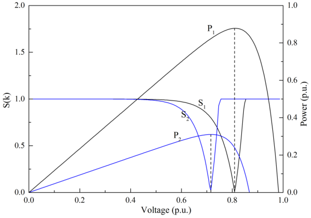 As shown in Figure 7, S1 and S2 are the adjustment coefficient curves corresponding to P1 and P2, respectively. Value of the adjustment coefficient S(k) decreases with the operating point getting close to the MPP, and it becomes zero when the system arrives at the MPP. Change trends and value ranges of S(k) are roughly the same under different irradiation levels. Furthermore, compared with the dP/dV, the adjustment coefficient S(k) varies more smoothly since its value is relatively smaller. Therefore, the adjustment coefficient S(k) is better suited for regulating the step size to track the MPP.